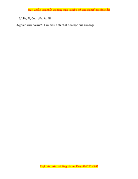 cáckim loại sau Fe, Cu, Al, Ag. Theo