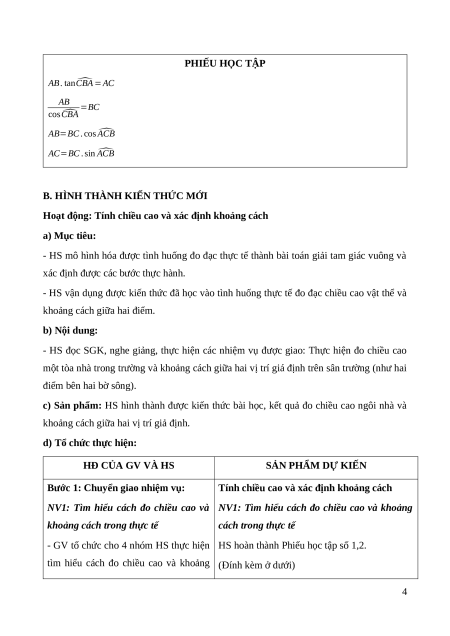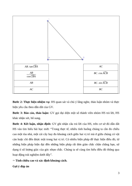Hoạt động: Tính chiều cao và xác định khoảng cách a) Mục tiêu: