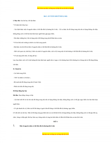 - Xác định được một số nguyên nhân có thể dẫn đến bị thương khi ở nhà. - Chỉ ra được tên đồ dùng trong nhà nếu sử dụng không cẩn thận,