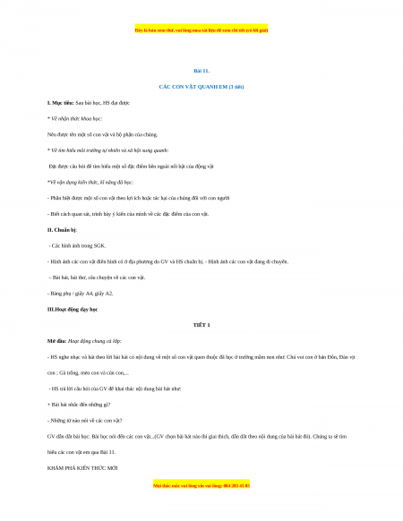 Giáo án TNXH 1 Cánh diều Các con vật quanh em