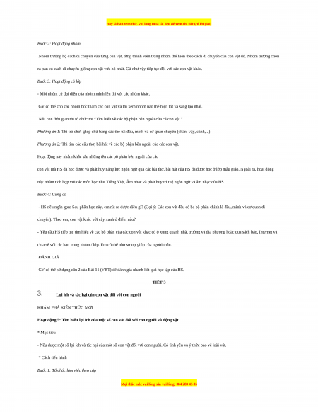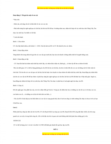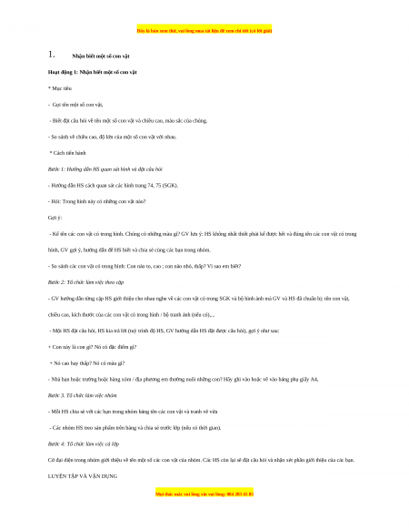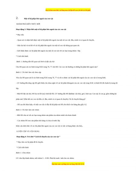 - Giới thiệu được các bộ phận bên ngoài của một số con vật với các bạn trong nhóm / lớp. * Cách tiến hành