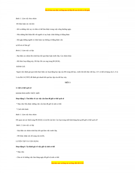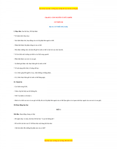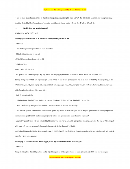 tìm hiểu về các bộ phận bên ngoài cơ thể và những hoạt động của chúng, những việc cần làm để giữ cơ thể sạch sẽ. 1.