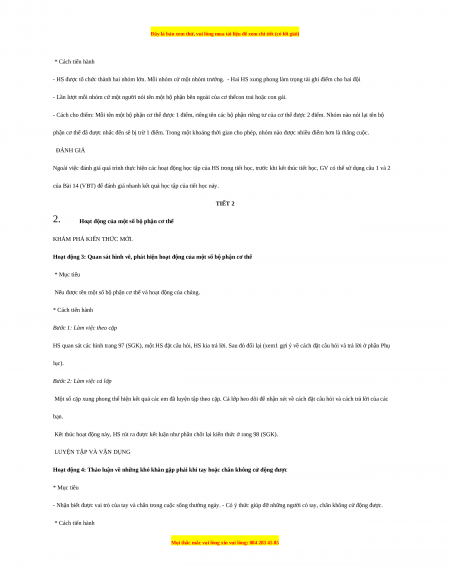 Liru ý: Trong quá trình HS làm việc theo cặp, GV hỗ trợ HS để các em xác định được tên một số bộ phận cơ thể tương đối có hệ thống, ví dụ: