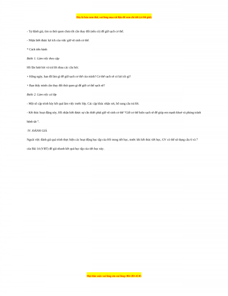 - Tự đánh giá được việc thực hiện giữ vệ sinh cơ thể