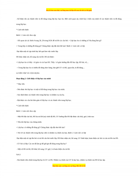 - Kể được tên các hoạt động chính trong lớp học ; nêu được cảm nhận của bản thân khi tham gia các hoạt động đó.