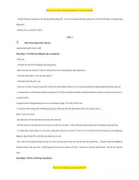 - Đế giữ đồ dùng trong lớp học, HS sắp xếp đồ dùng đúng chỗ ; lau chùi và bảo quản đồ dùng, không viết, vẽ bậy lên đồ dùng, sử dụng đồ dùng đúng cách ;...
