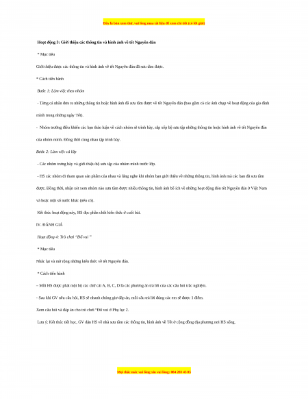 Giới thiệu được các thông tin và hình ảnh về tết Nguyên đán đã sưu tầm được. * Cách tiến hành