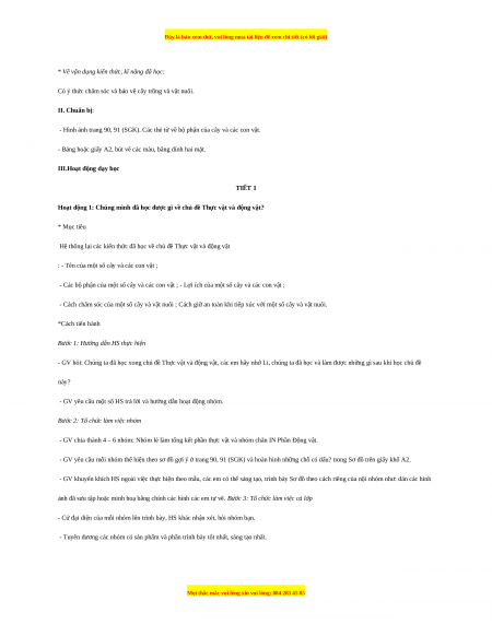 - GV chia thành 4 – 6 nhóm: Nhóm lẻ làm tổng kết phần thực vật và nhóm chăn IN Phần Động vật.