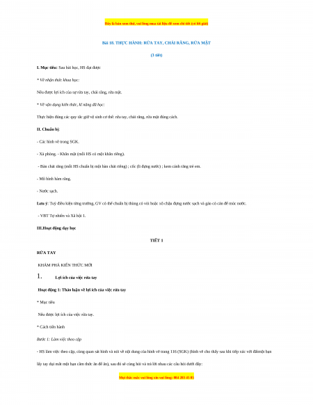 Bài 18. THỰC HÀNH: RỬA TAY, CHẢI RĂNG, RỬA MẶT (3 tiết)