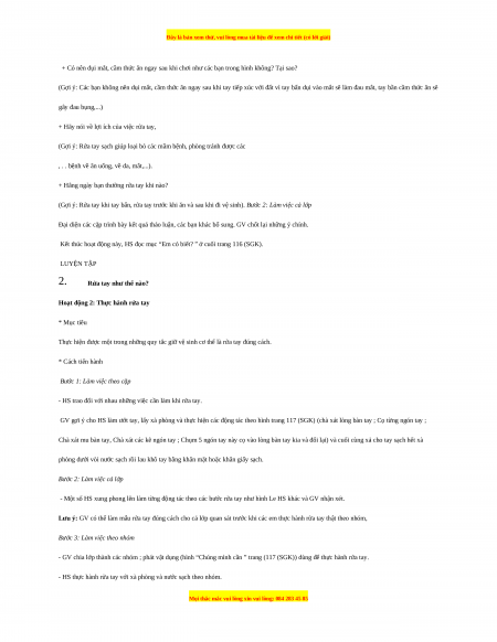 (Gợi ý: Rửa tay khi tay bẩn, rửa tay trước khi ăn và sau khi đi vệ sinh). Bước 2: Làm việc cả lớp