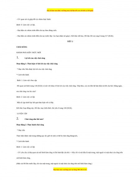* Mục tiêu Nêu được lợi ích của việc chải răng. * Cách tiến hành