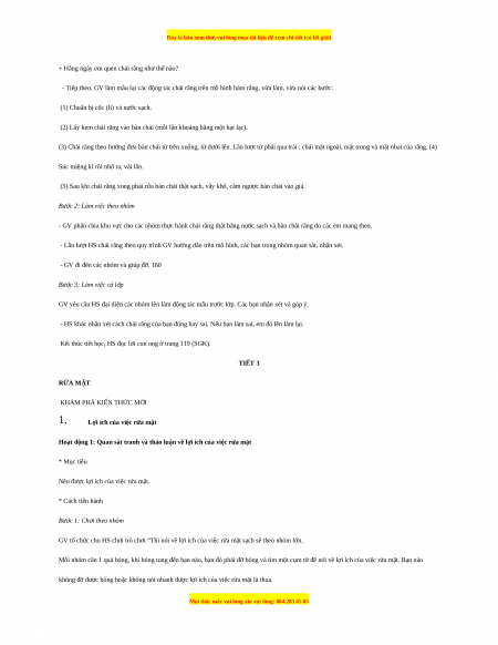 III.Hoạt động dạy học TIẾT 1 RỬA TAY