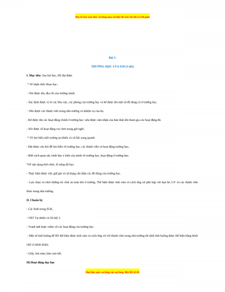 TRƯỜNG HỌC CỦA EM (3 tiết)