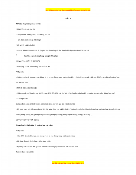 - Nói được tên các khu vực, các phòng và vị trí của chúng trong trường bạn Hà.- - Biết cách quan sát, trình bày ý kiến của mình về trường học.
