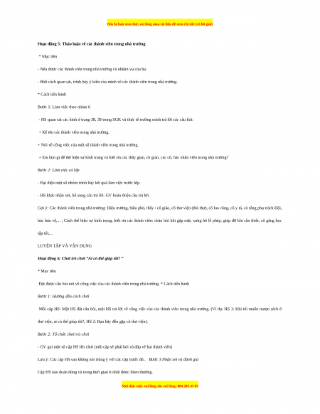 - Biết cách quan sát, trình bày ý kiến của mình, đặt câu hỏi về các hoạt động trường. * Cách tiến hành