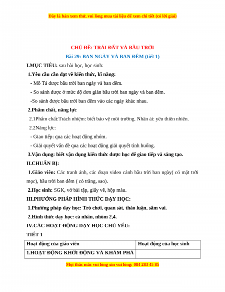 Bài 29: BAN NGÀY VÀ BAN ĐÊM (tiết 1)