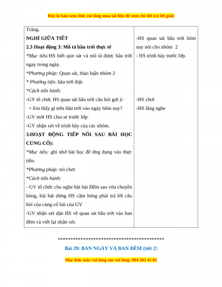 Bài 29: BAN NGÀY VÀ BAN ĐÊM (tiết 2)