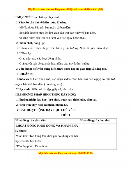 Giáo án TNXH 1 Chân trời sáng tạo Ban ngày và ban đêm