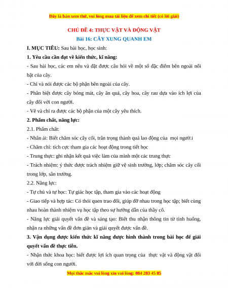 - Trách nhiệm: ý thức được trách nhiệm giữ vệ sinh trường, lớp; chăm sóc cây cối trong lớp, sân trường. 2.2. Năng lực: