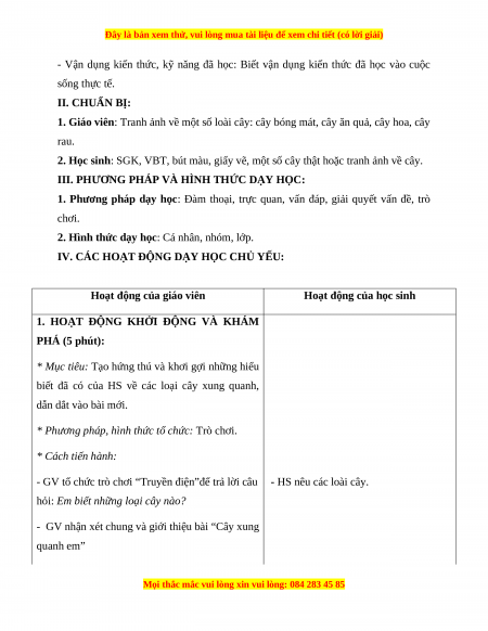 Giáo án TNXH 1 Chân trời sáng tạo Cây xung quanh em