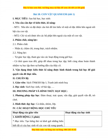 Bài 18: CON VẬT QUANH EM (tiết 1)