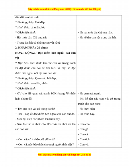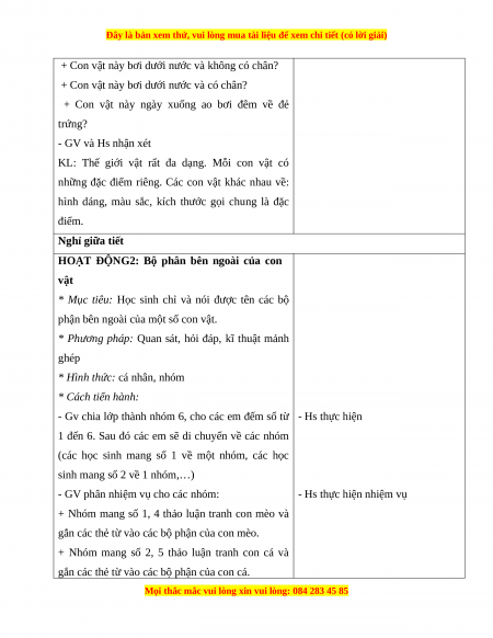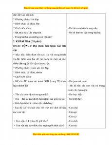 - MT2: Chỉ và nói được tên các bộ phận bên ngoài của một số con vật.