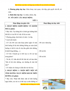 - Nhận thức khoa học: Học sinh nhận biết được một số tình huống nguy hiềm rủi ro