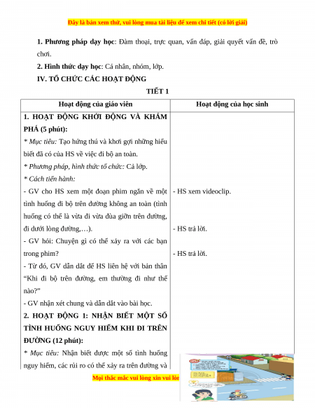 Giáo án TNXH 1 Chân trời sáng tạo Đi đường an toàn
