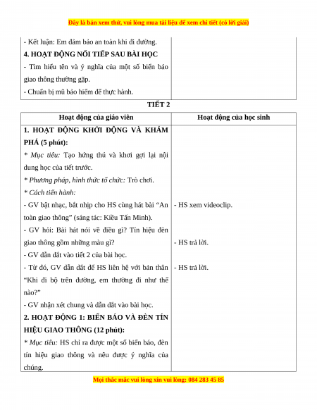 2. HOẠT ĐỘNG 1: BIỂN BÁO VÀ ĐÈN TÍN