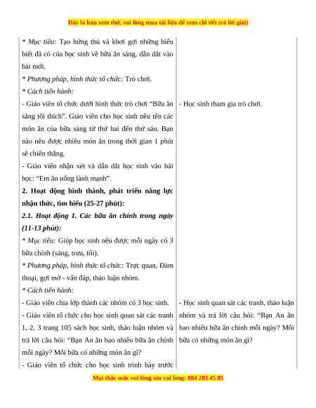 2.1. Hoạt động 1. Các bữa ăn chính trong ngày (11-13 phút):