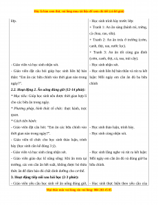 - Giáo viên giáo dục kĩ năng sống: Khi ăn trưa tại Mỗi ngày em cần ăn đủ và đúng giờ ba
