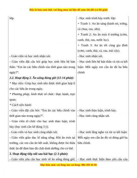 2.2. Hoạt động 2. Ăn uống đúng giờ (12-14 phút):