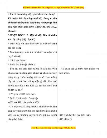 * Mục tiêu: HS làm được một số việc để chăm sóc cây trồng