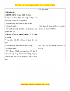 - Nhận thức khoa học: biết chăm sóc và bảo vệ cây trồng.