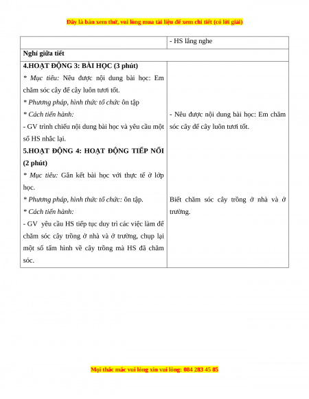 - Sau bài học, các em nêu và và làm được một số việc để chăm sóc và bảo vệ cây