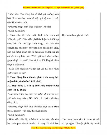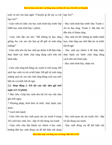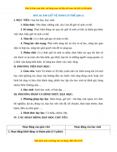 5. Phẩm chất: Có ý thức giữ vệ sinh cá nhân, thực hiện các quy tắc bảo vệ