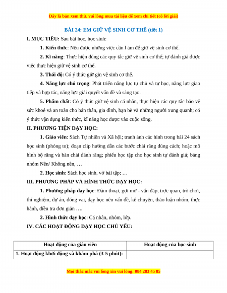 3. Thái độ: Có ý thức giữ gìn vệ sinh cơ thể.