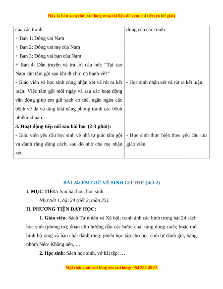 1. Giáo viên: Sách Tự nhiên và Xã hội; tranh ảnh các hình trong bài 24 sách