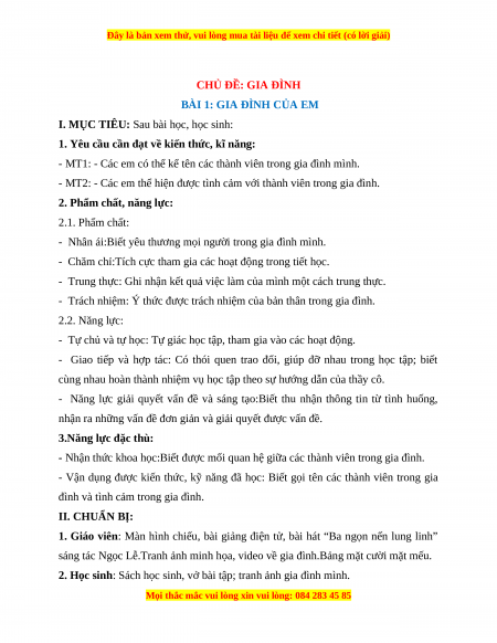 - Trách nhiệm: Ý thức được trách nhiệm của bản thân trong gia đình. 2.2. Năng lực: