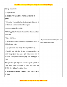 - Gv yêu cầu Hs thảo luận nhóm đôi theo các gợi ý