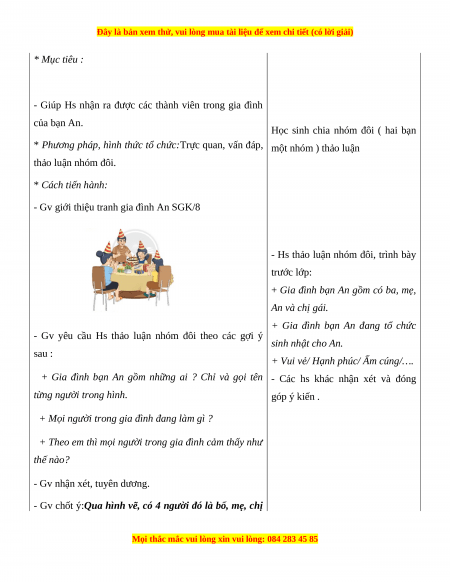 2. Học sinh: Sách học sinh, vở bài tập; tranh ảnh gia đình mình.