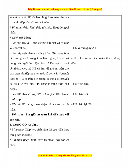- Kết luận: Em giữ an toàn khi tiếp xúc với con vật. 3. CỦNG CỐ: (3 phút)