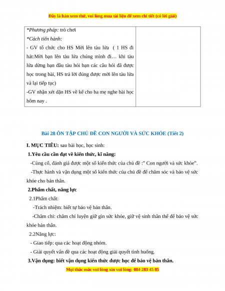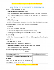 Bài 28 ÔN TẬP CHỦ ĐỀ CON NGƯỜI VÀ SỨC KHỎE (Tiết 2)