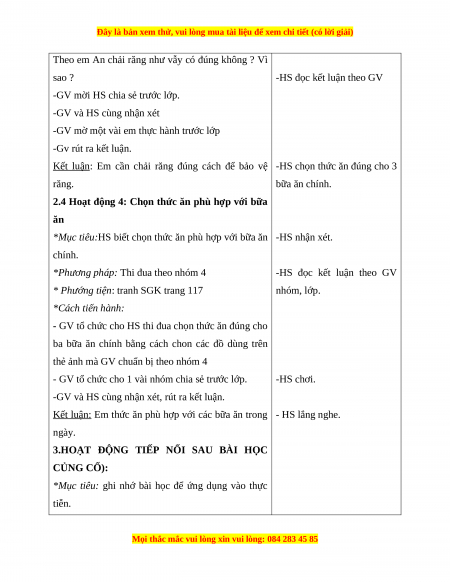2.4 Hoạt động 4: Chọn thức ăn phù hợp với bữa ăn