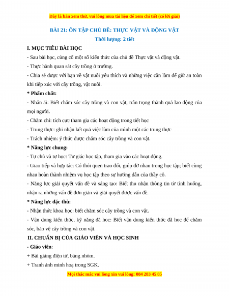 BÀI 21: ÔN TẬP CHỦ ĐỀ: THỰC VẬT VÀ ĐỘNG VẬT