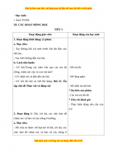 - Sau bài học, củng cố một số kiến thức của chủ đề Thực vật và động vật.