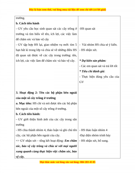 chăm sóc và bảo vệ cây trồng ở trường. a. Mục tiêu: