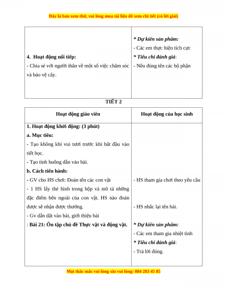 - Chia sẻ với người thân về một số việc chăm sóc - Nêu đúng tên các bộ phận và bảo vệ cây. TIẾT 2