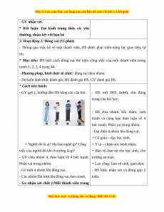 * Mục tiêu: HS biết cách đóng vai thể hiện công việc của một thành viên trong tranh 1, 2, 3, 4 trang 44.