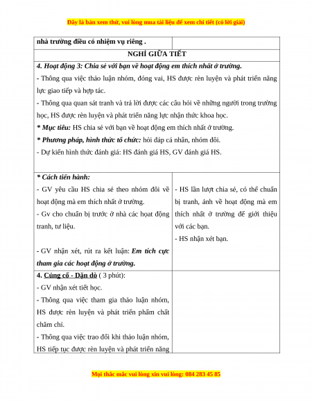 4. Hoạt động 3: Chia sẻ với bạn về hoạt động em thích nhất ở trường.